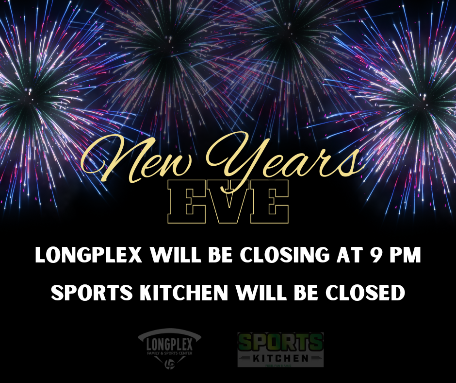 Longplex will be closing at 9 pm. Sports Kitchen will be closed for the day. Have a happy and safe New Year!